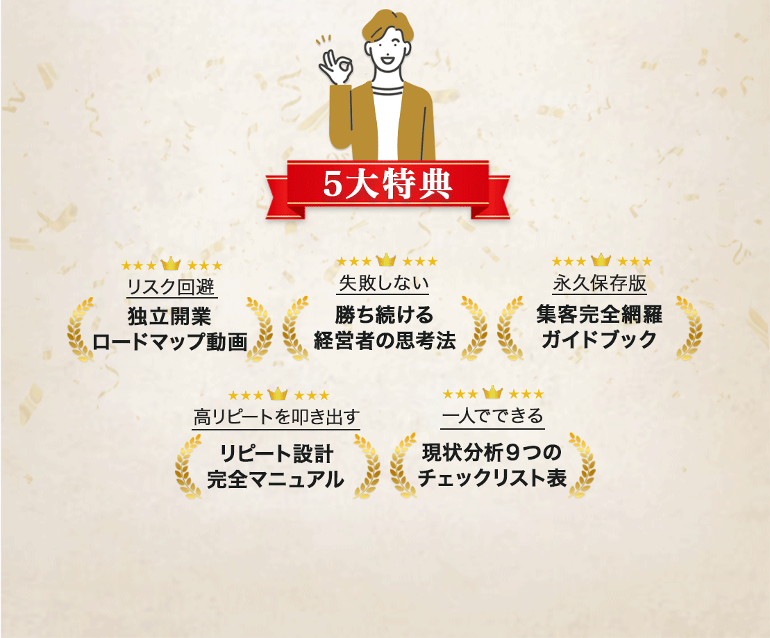 独立開業して3ヶ月で月100万円達成できました! 独立にあたって必要なマインドセットや集客やリピートのテストなど 起業する前に準備できることを把握して、行動できたのが一番良かったです! 開業して売上を作る以外にも、どの程度の収入で幸福を感じるのか、どんな方を相手にして仕事をしていくのかなど、売上以外の部分でも大変学びになったと今も感じています!